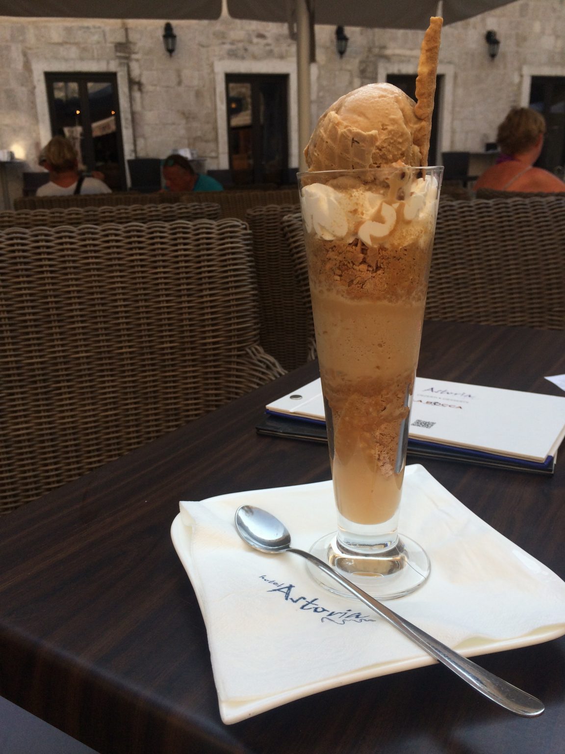 The outdoor terrace is very busy during the summer months and offers full table service and an a la carte menu. I enjoyed sitting there in the afternoons with a cocktail or a dessert. When it gets sunny, the umbrellas are extended to provide shade. It’s a really lovely place to relax and people watch.