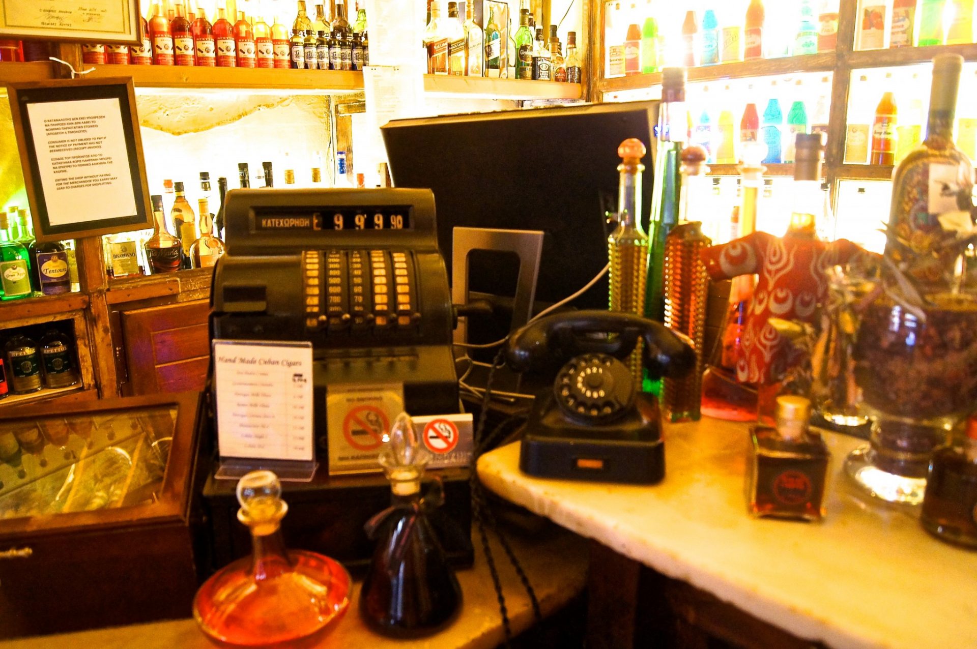Hi Wendy – it really does look like a fun place with so many amazing old things collected there. I just love the photos with the bartender and logo against the wall of light and colored glass. Some tricky lighting to photograph, but you captured it beautifully. Quadruple distilled Ouzo – Yum!! Makes me want to go back to Greece. Thanks for sharing! 🙂