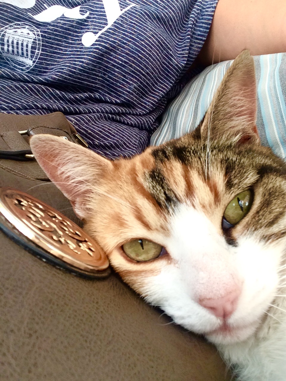 He eventually warmed up to the coffee date, in fact I didn’t think he wanted me to leave. As this Alley cat decided my bag made for a good pillow.