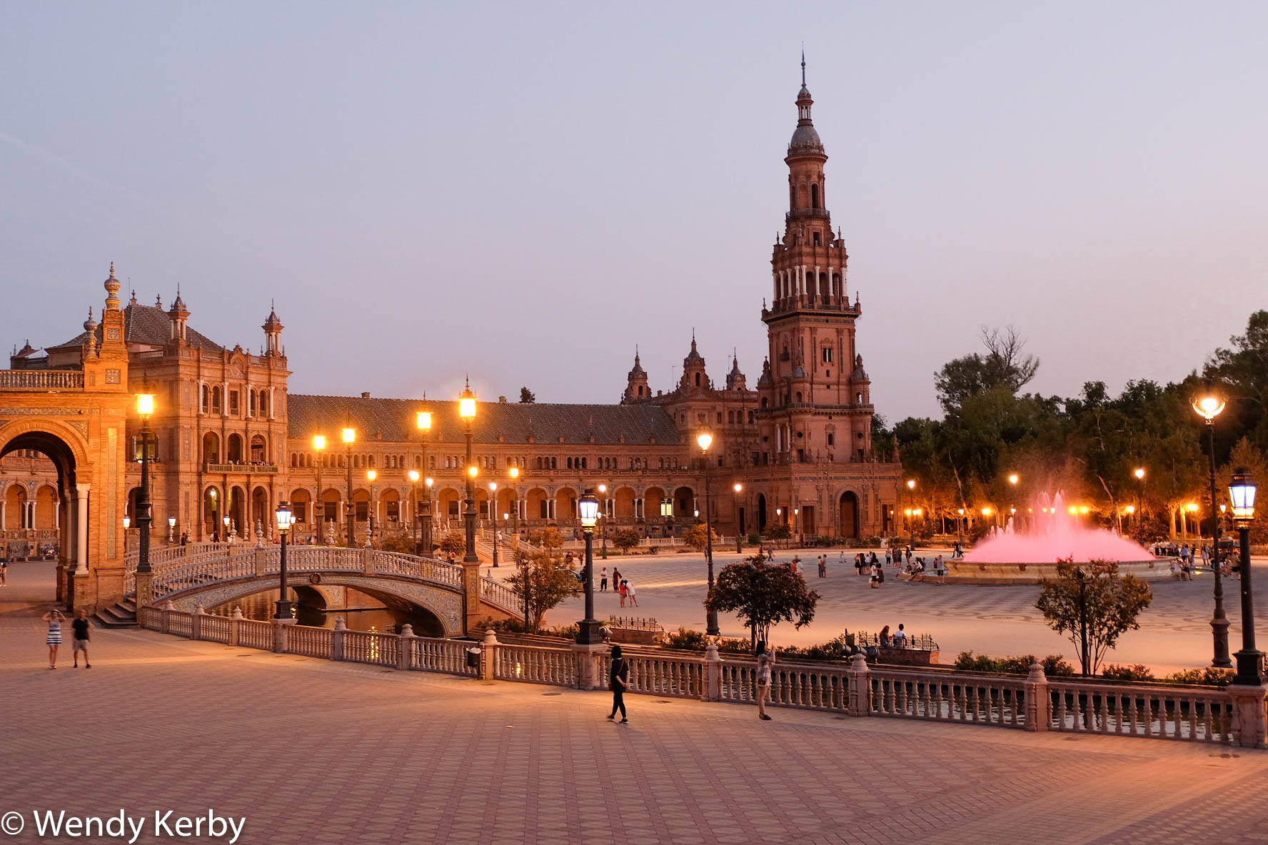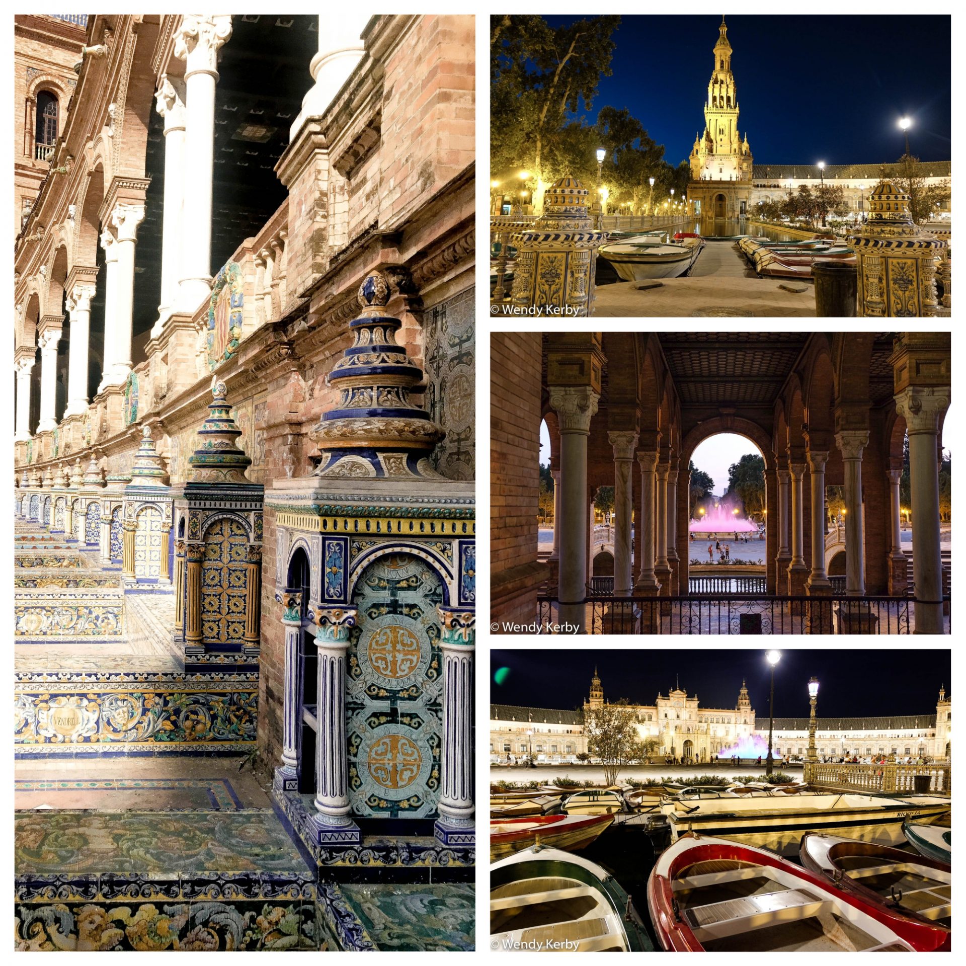 By 6 pm, I found myself walking towards the magnificent Plaza de Espana. With the sun beating down, there wasn’t a lot of tourists at this place, which suited me as I got some great photos without too many people in my shots. I was also lucky to see a little group putting on a flamenco show, which was fantastic. They were busking, but boy were they good! I didn’t feel the need to go to a show after seeing this. All with the backdrop of the Plaza in the background. You can easily spend quite a fair bit of time at the plaza, wandering about, taking a boat ride in the waterway or admiring the gardens. I made two visits to the Plaza de Espana, one during the day and the other time at night.