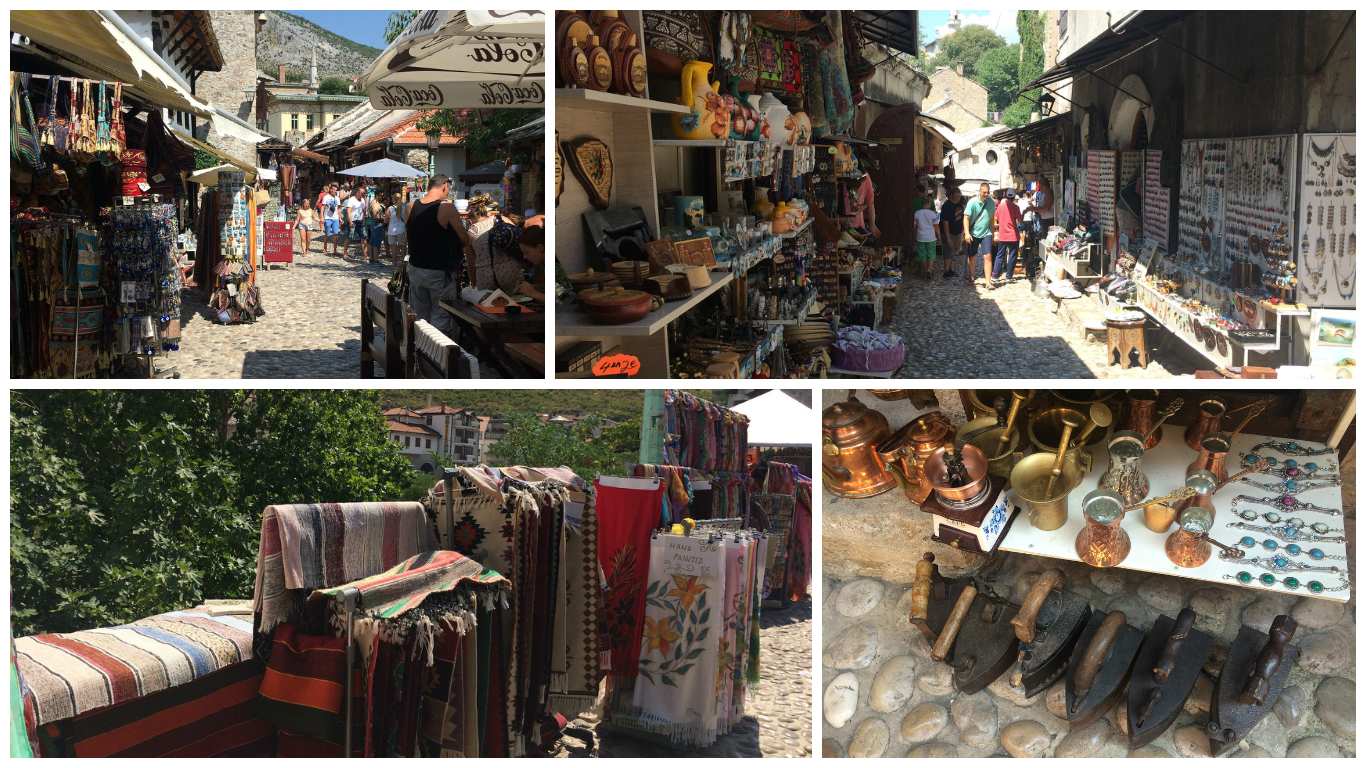 Upon arriving at Mostar, you will no doubt head in the direction of the old town and what you will find is this picturesque village like scene. Cobblestone Streets and old buildings flank either side of the Neretva River. Each side is connected by the well known bridge, Stari Most. As you wander into the village, you will make your way through the market, which will lead you to the centre of town and the bridge. The bridge has a great vantage point to survey the river and the town itself.
