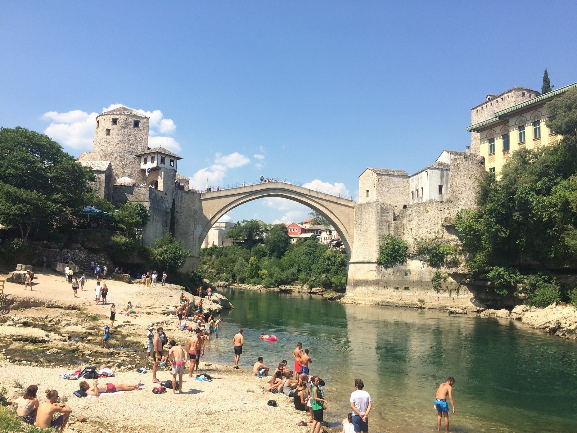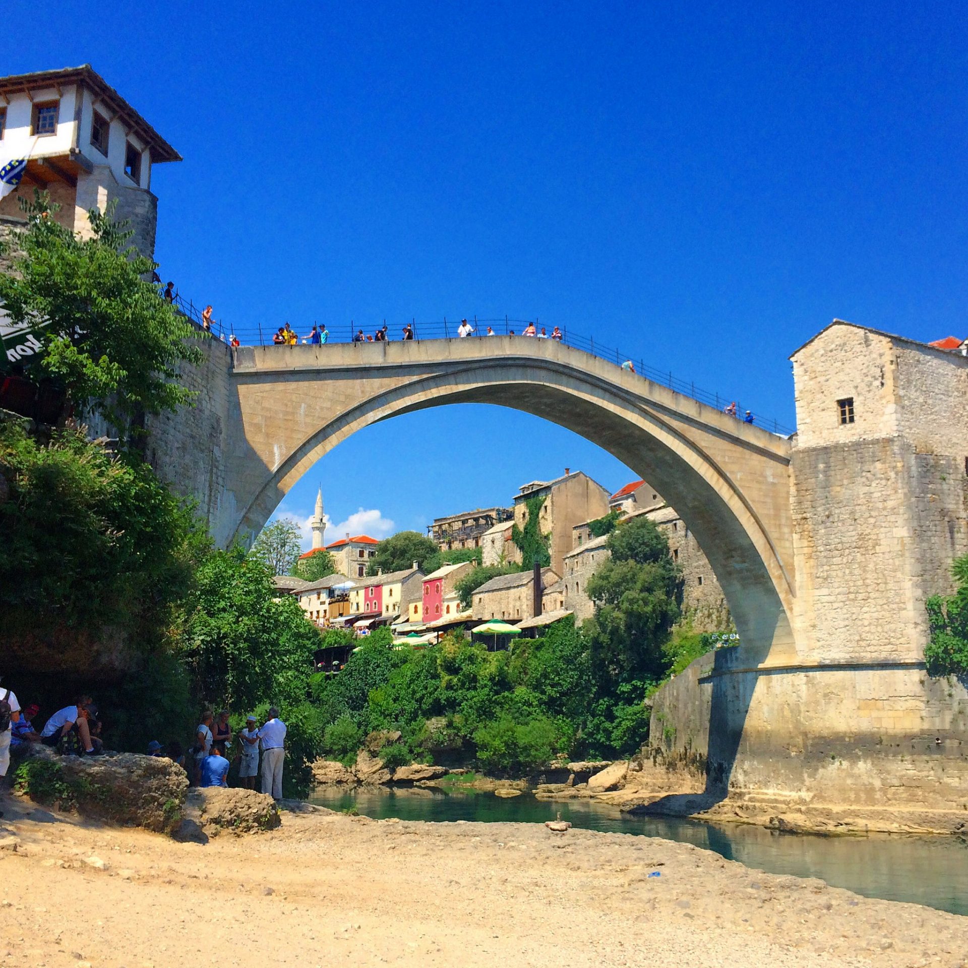 Whilst you are visiting Mostar in the summer months, you will no doubt at some point come across these locals who will jump from the bridge into the cold waters below. Once these locals raise ‘enough’ money in their cap (usually around 20 euro) they will jump. It’s really quite an exciting thing to watch and the cheers from the crowds make for such a great atmosphere. The bridge jumping is an old tradition dating back to the 1600s, it is only performed by locals as it is quite dangerous. The river is deeper than it looks. There is an opportunity for tourists to be able to perform a jump, but only after comprehensive training.
