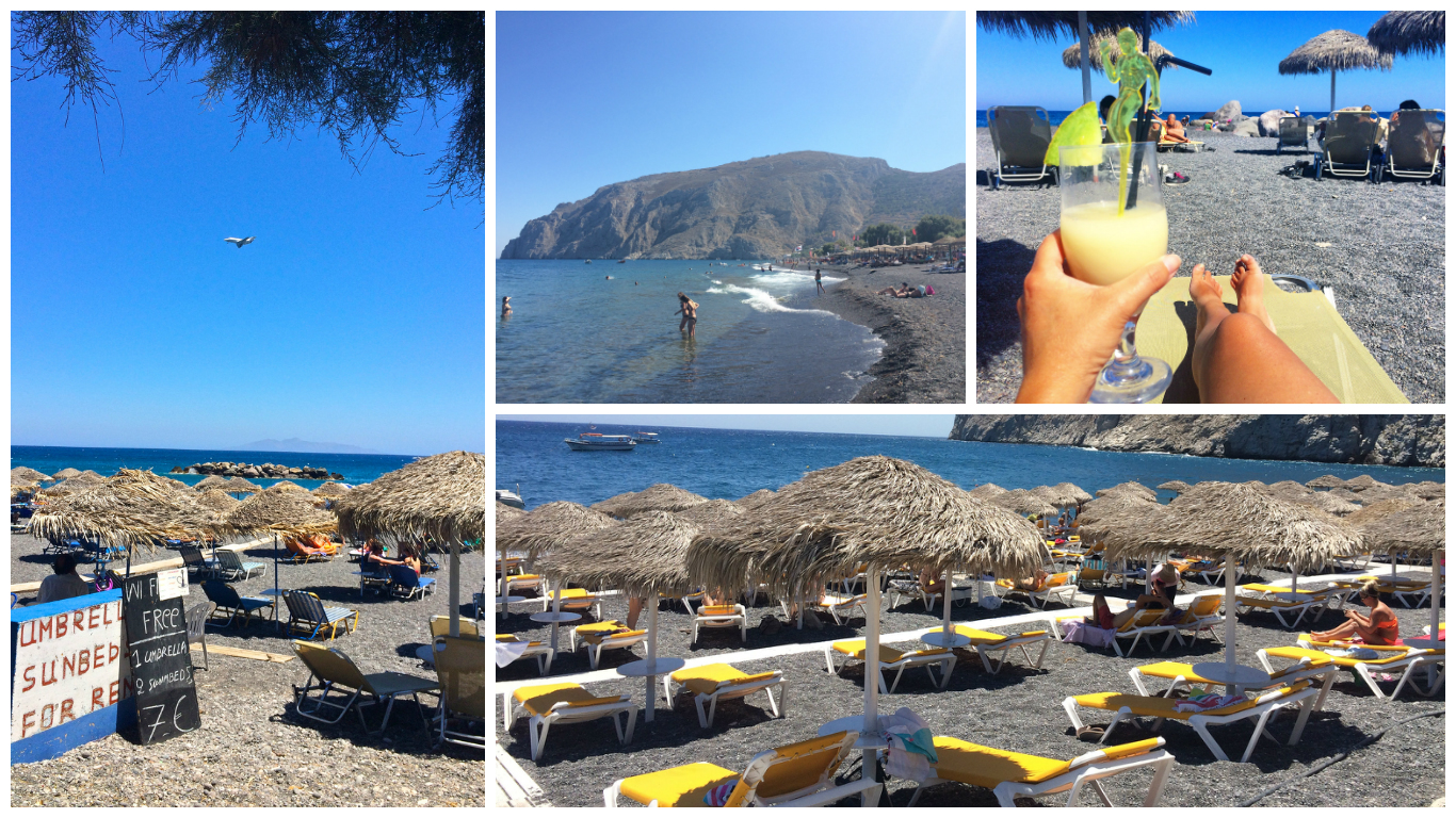 Mention Santorini and most tourists will flock to Fira or Oia for those sublime views of the caldera or to watch a magnificent sunset. Others who are looking for a beach holiday, will head to the Eastern side of the island and will most likely find themselves in Kamari. As I was staying in Imerovigli, I wanted to see what the beaches were like on the other side of the island. So I decided to hop on a bus and spend a day wandering Kamari Beach.