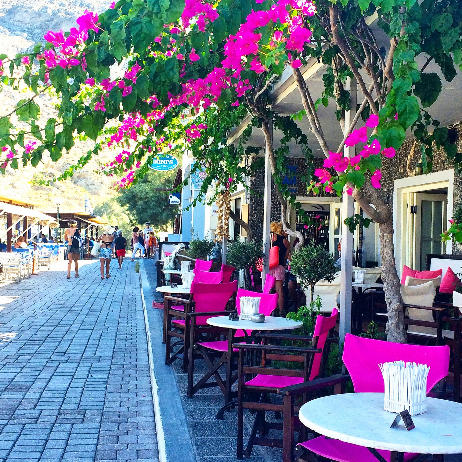 In the backstreets of Kamari you will find accommodation of all sorts, from backpackers to hotels. The more upmarket hotels are towards the mountain away from the nightlife, which fires up on the main strip later on in the night.