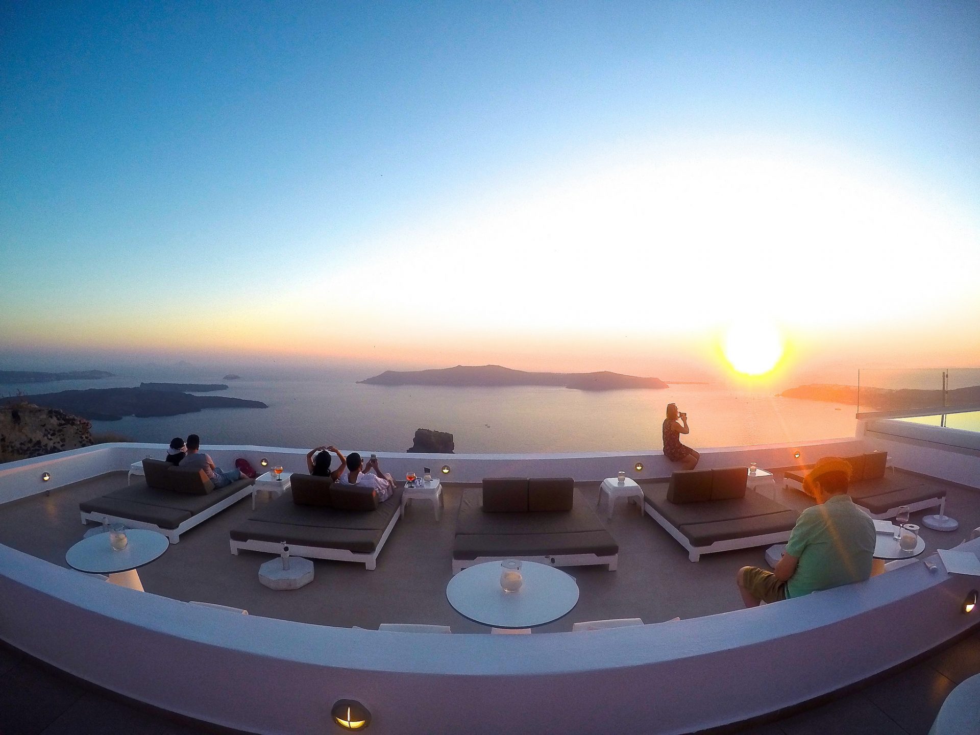 You don’t have to head to one of the restaurants in Oia to watch a magnificent sunset in Santorini. You can also get a fabulous view from La Maltese Restaurant and Bar in Imerovigli. La Maltese is located on the highest point of the island, giving you a unique view of the Caldera and Oia, with the sun slowly going down on the horizon.